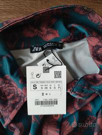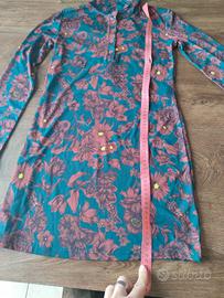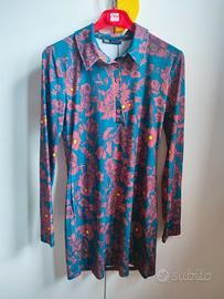 Splendido capo Zara versatile che può essere indossato come abito corto o come maxi maglia/tunica sopra dei leggings o jeans. Presenta una bellissima stampa floreale nei toni del bordeaux e senape su fondo verde petrolio. Brand: Zara Taglia adatta: XS, S, M Dettagli: Modello a polo con colletto e bottoncini sul davanti, maniche lunghe, tessuto morbido ed elasticizzato che segue le forme. Condizioni: nuovo. Stile: Perfetto per un look boho-chic o per l'ufficio.