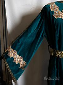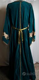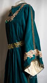 Abito completamente cucito a mano, raffigurante una cortigiana o dama di compagnia del periodo medioevo/rinascimento. Può essere usato per rievocazioni e cortei storici, presepi viventi o anche per feste in maschera