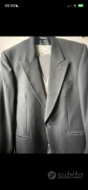 elegantissimo abito da cerimonia uomo, mezzo tight, firmato Nazzareno Gabrielli. Composto da 3 pezzi: •Giacca nera: spalle 43 cm, lunghezza 78 cm; •Pantalone a righe grigio/nero con pence: lunghezza gamba esterna 111 cm, interna 84 cm ( altri 8 cm di piega a disposizione), larghezza coscia 32 cm, larghezza piede 23 cm; •Gilet grigio chiaro. Usato una volta 🙂 Un completo elegante, di alta qualità e dal taglio classico intramontabile, ideale per cerimonie formali.