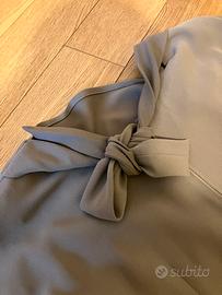 Eleganza senza tempo. Questo abito midi color grigio tortora è il perfetto equilibrio tra sobrietà e stile ricercato. Realizzato in un tessuto fluido che cade morbidamente sulla silhouette, è ideale per occasioni formali, ufficio o cerimonie.