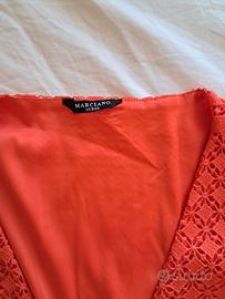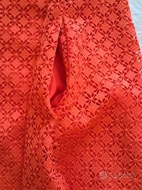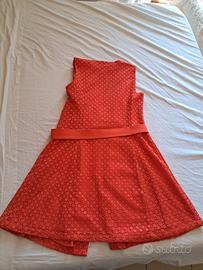 Abito midi guess marciano estivo a portafoglio, colore arancio acceso,effetto sangallo, con tasche, TG.44/L usato 1 volta.