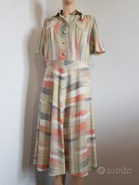 Abito vintage con cintura in vita. Color crema con fantasia geometrica dai colori pastello. Misure spalle 40 cm, da ascella ad ascella 48 cm, vita 43 cm, lunghezza 107 cm. Effetto polo/camicia nella parte superiore con taschini al petto. Maniche corte. Bottoni fino alla vita e scende morbido sotto. #abito #abitomidi #abitolungo #abitoestivo #abitoprimaverile #pastello #abitocrema #abitomulticolore #abitomanichecorte #abitoelegante #abitopolo #abitoaline #abitoromantico #dress #mididress #longdress #summerdress #springdress #pastel #creamdress #multicoloreddress #shortsleeveddress #elegantdress #polodress #alinedress #romanticdress #ceremonydress #partydress #beltdress #70s #80s #robe #robemidi #robelongue #robeété #robeprintemps #pastel #robecrème #robemulticolore #robemanchescourtes #robeélégante #robepolo #robetrapèze #roberomantique #robedecérémonie #robedefête #robeceinture #années70 #années80 #abitocerimonia #abitofesta #abitocintura #anni70 #anni80 #chic #vintage #retro #vintagestyle #verovintage #vintagedressing #vestido #vestidomidi #vestidolargo #vestidodeverano #vestidodeprimavera #pastel #vestidocrema #vestidomulticolor #vestidodemangacorta #vestidoelegante #vestidopolo #vestidolíneaA #vestidoromántico #vestidodeceremonia #vestidodefiesta #vestidoconcinturón #años70 #años80