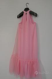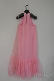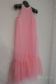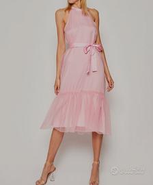Abito midi taglia S con scollo all'americana. Con tulle color rosa e cinturino in raso. Usato una sola volta in occasione di matrimonio estivo. Fresco, leggero comodo e versatile.