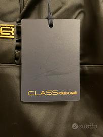 Elegante abito firmato CLASS Roberto Cavalli, dal design femminile e sensuale, impreziosito da linee sofisticate e dettagli accurati. Modello midi con silhouette avvolgente, pensato per mettere in risalto la figura con raffinatezza. Colore: nero Scollo: a V con inserto centrale Maniche: corte arricchite da dettagli in pizzo Struttura: drappeggiata per un effetto modellante che segue armoniosamente le forme Chiusura: zip posteriore Vestibilità: regolare, aderente Condizioni: nuovo, mai indossato, completo di cartellino originale (vedi foto) Perfetto per serate eleganti, cerimonie o occasioni formali, questo abito rappresenta la scelta ideale per chi desidera un capo d'impatto che rifletta l'eccellenza della moda firmata Roberto Cavalli. Spedizione veloce e accurata.