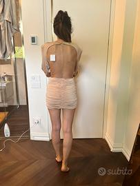 Mini abito color begie oro mini Gonna e schiena scoperta