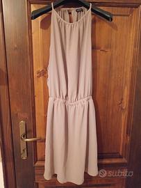 Abito leggero e raffinato, ideale per cerimonie o serate estive. Il taglio è fluido con un particolare gioco di aperture sulla schiena.