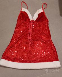 Abito natalizio rosso con paillettes e morbide decorazioni, leggermente elasticizzato. taglia unica