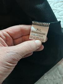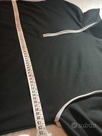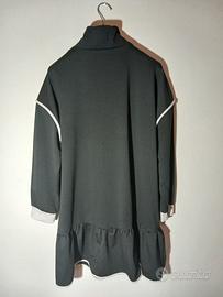 Bellissimo abito corto nero in stile sportivo, caratterizzato da una vestibilità ampia e oversize che lo rende estremamente comodo e alla moda. - Taglia: XL (grazie al taglio generoso, veste molto comodo e cade fluido senza stringere). - Stile: Design "boxy" con colletto alto e zip bianca a contrasto. La balza sul fondo aggiunge un tocco femminile a un capo dal carattere deciso. - Dettagli: Profili bianchi sulle maniche e sulla balza che richiamano lo stile varsity. - Materiale: 95% Poliestere, 5% Elastane. Tessuto morbido, leggermente elastico e che non necessita di stiratura. Consiglio Look: Perfetto da portare così com'è per un effetto extra-large, oppure con una cintura in vita se si desidera segnare la silhouette. Un capo jolly per chi ama stare comoda senza rinunciare allo stile! - Spedizione rapida dopo l'acquisto - Consegna a mano vestito nero oversize, vestito nero, vestibilità oversize, vestito nero collo alto, vestito nero sportivo, vestito nero casual,