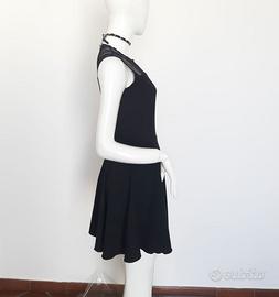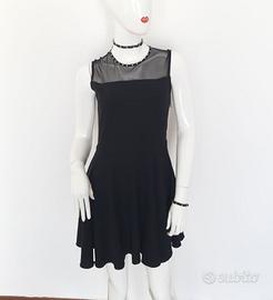 spalle con effetto velato , decorate con tulle elasticizzato e borchie nel girocollo , gonna scampanata . ottima vestibilità . Rinascimento (XS )