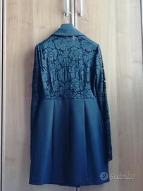 Abito nero con bottoni a doppio petto. Maniche lunghe e schiena in pizzo.