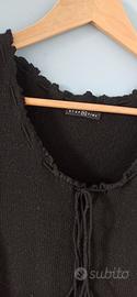 Vestito nero in misto lana. Linea morbida che abbraccia la silhouette.