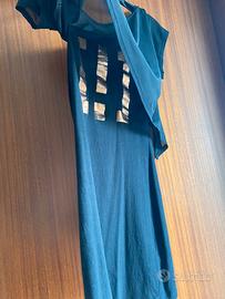 Abito tubino nero a canottiera in cotone elasticizzato marca Imperfect, scritta color bronzo, coprispalle in tulle incorporato.