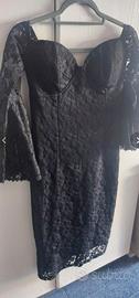 Abito nero in pizzo, maniche a voilat. Taglia S/M Scollo a cuore. Modello elegante