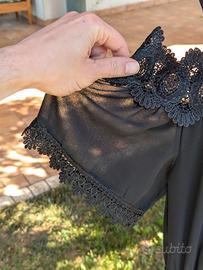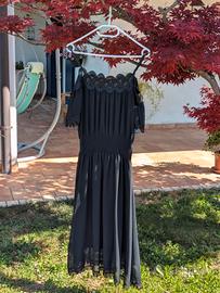 Vendo bellissimo abito midi nero di marca Lou Lou London, originale e in condizioni impeccabili (pari al nuovo). Il vestito si distingue per i raffinati inserti in pizzo macramè floreale sullo scollo, sulla vita e sulle maniche. Modello con spalle scoperte (cold shoulder) e maniche a campana, molto elegante e fluido. - Taglia: 42 (IT) - Condizioni: Ottime, indossato pochissimo. - Valore: Pagato 85€ in boutique. - Occasioni: Perfetto per cerimonie, matrimoni o eventi serali. Disponibile per la spedizione tramite TuttoSubito o per il ritiro a mano in zona. Massima serietà.