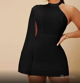 Vendo abito nero monospalla SHEIN, elegante e minimal, utilizzato solo una volta e pari al nuovo. Modello con zip sul retro e linea fluida, ideale per serate, feste o eventi.
