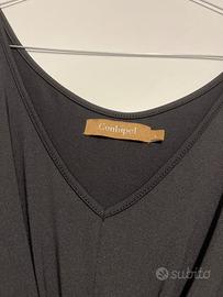 Elegante abito smanicato nero, drappeggiato davanti. Taglia L