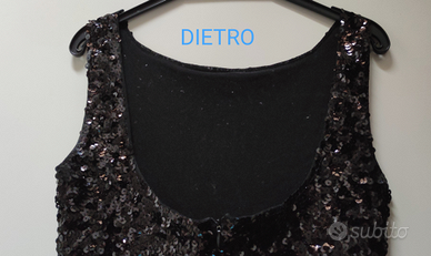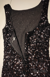 Meraviglioso abito in paillettes, foderato. Particolare lo scollo più ampio sul retro ma che consente di essere indossato con il reggiseno, cerniera centrale sulla schiena. L'effetto cambia a seconda della luce, vedi foto. Taglia S, veste perfettamente una taglia 42 (38 europea), lunghezza cm. 86. Capo perfetto, MAI INDOSSATO. Altre foto disponibili. #abitopaillettes #abitoneroelegante #abitoneropaillettes #abitocapodannodonna #abitofestenatalizie #abitofeste #abitodasera