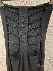 Abito nero elasticizzato morbido. Con collo e ampia scollatura nella schiena fin sopra al sedere, con cordoncino. Taglia unica s/m. Lunghezza fino sotto al ginocchio.