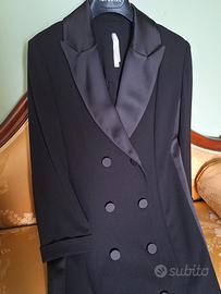 indossato in una sola occasione..praticamente nuovo..con taglio sartoriale e contemporaneo, design lineare con fasce laterali a contrasto in raso che richiama i bottoni e il revers...