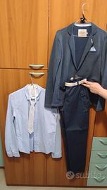 Abito carta da zucchero di original marines corredato di giacca, pantalone, camicia, cintura e cravatta. tg anni 13/14 vestibilità 11/12. Camicia color polvere. ottimo per cerimonia. non spedisco, abito si trova a Roma nord marca original marines