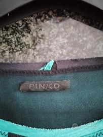 Vestito originale Pinko a fantasia nero e verde smeraldo, taglia 42, 100% seta, tasche laterali, ottimo stato