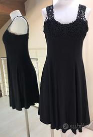 Abito Orna Farho Parigi, vendo abito il Jersey con bellissimo motivo scollo/spalline in cordonetto, ampia svasatura al fondo, tg42(Italia tgM), col.nero, 67% poliestere 23% viscosa, 10%lycra. Lunghezza metà dietro cm68 da scollatura (lunghezza a capo indossato da settima vertebra cervicale cm86/87 circa cm47 dalla vita anatomica), circonferenza torace sul seno cm 92, circonferenza vita cm76, circonferenza fondo 206. Ulteriori dettagli se richiesti.