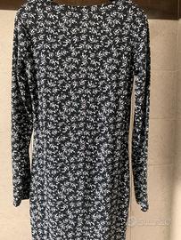 Abitino in tessuto elasticizzato a manica lunga. Semplice da indossare, morbido che cade stringendo leggermente sul fondo Indossato una sola volta ottimo con uno stivale e con i giusti accessori. La taglia corrisponde ad una 40/42 OVS Non sono state eseguite modifiche sartoriali.