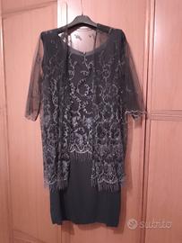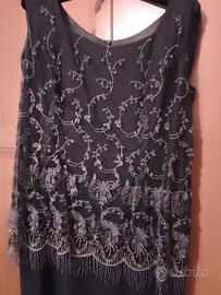 tubino nero smanicato con giacca leggera a manica corta lavorata