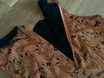 Gonna a pieghe con sottogonna in tinta unita nera e con balza arricciata lievemente piu lunga.