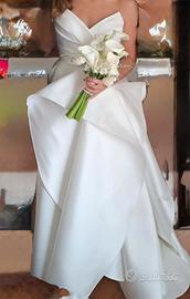Abito da sposa Valentini, Mikado seta pura, indossato a Giugno 2024. Taglia 44, velo non incluso. Corpino strutturato con drappeggio e scollo incrociato, gonna con onde removibili. Sposa 170 cm più 7 cm di tacchi. Prezzo 3.900€ (Listino 5.000€). Lavato e stirato in lavanderia specifica. Preferibile consegna a mano o brevi tratti autostradali.