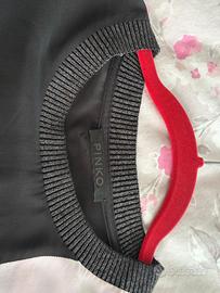 Raffinato e accattivante, questo abito Pinko taglia 42 è un vero gioiello. Caratterizzato da un elegante corpo nero, si distingue per le sue maniche interamente ricoperte di scintillanti paillettes argentate. I polsini sono impreziositi da tre dettagli gioiello rettangolari in cristallo, che aggiungono un tocco di luce e glamour.