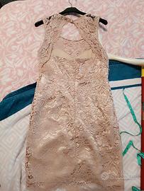 Abito Pizzo Rinascimento utilizzato solo 1 volta ,Rosa Antico ,taglia M ,foderato con fodera beige chiaro ,senza maniche , schiena parzialmente scoperta con zip come si vede dalla foto