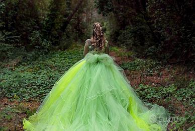 Vendo abito ampio enorme lungo pieno di tulle verde meraviglioso