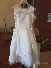 bellissimo, ottima qualità, acquistato in atelier a 180 euro, indossato una sola volta, come nuovo. Dotato di sottogonna in tulle. Marca Alessia. Made in Italy. Color panna, taglia 10 anni.