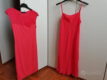 Abito di stampo elegante, comprato per una cerimonia Usato una volta sola, già lavato. Colore: rosa geranio Taglia S (versatile) Sottoveste leggera e vestito da posizionare sopra a tubino con due fiori decorativi a sinistra. Lunghezza al ginocchio