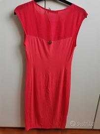 Vestito di stampo elegante, comprato per una cerimonia Usato una volta sola, già lavato. Colore: rosa geranio Taglia S (versatile) Sottoveste leggera e vestito da posizionare sopra a tubino con due fiori decorativi a sinistra. Lunghezza al ginocchio