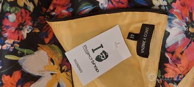 Abito smanicato fantasia a fiori. in raso. Nuovo con cartellino mai usato.