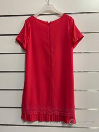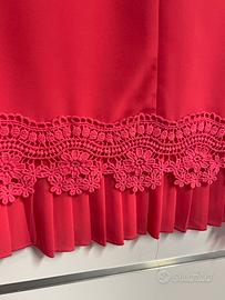 Abito manica corta, foderato, con fondo in pizzo e plissè. SARABANDA