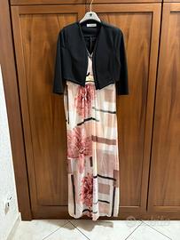 - Abito lungo con fantasia floreale nei toni del rosa cipria