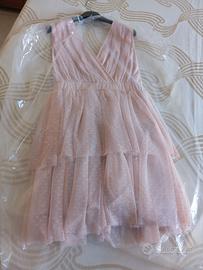 Vendo bellissimo abito Rinascimento taglia L (veste benissimo anche una M una S) tulle e raso rosa antico. Usato una sola volta e conservato in maniera maniacale come da foto allegate. Nessun buco, nessuno strappo al tulle, praticamente come nuovo. Prezzo leggermente trattabile.