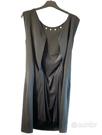 Bellissimo vestito estivo nero, dalla linea dritta ed elegante. - Lunghezza al ginocchio. - Dettaglio di frange sul davanti. - Perfetto per occasioni speciali.