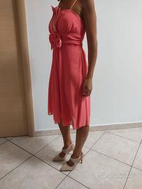 Abito da cerimonia rosa corallo indossato una sola volta in occasione di un matrimonio. TagliaM / IT 42 / EU 38