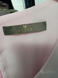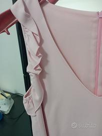 Abito rosa corto al ginocchio, senza maniche con volan, di cotone e foderato