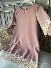 Incantevole questo abito rosa antico con stupendo pizzo sfrangiato avorio alla fine della manica(a 3/4) e all’orlo Mi fa pensare all’abito di una bambola d’antiquariato😌😌😌 Lunghezza 84 cm Giroseno 90 cm Spalle cm 37