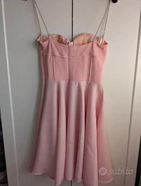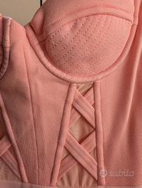 Abitino rosa Versace jeans couture, ottime condizioni Scollato con reggiseno a balconcino, coppe piccole e imbottite. Corpetto con inserti incrociati, cerniera posteriore, gonna a ruota foderata ⚠️ le spalline sono in metallo ma non sono del modello originale, quelle originali erano spalline rosa regolabili in tessuto Composizione: tessuti di diverse composizioni, poliestere, viscosa, acrilico 📐 Lunghezza della gonna 46 cm, lunghezza abito comprese bretelle 86 cm