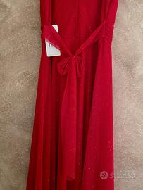 Bellissimo abito ROSSO, da festa - cerimonia - matrimoni etc. MAI MESSO "ancora con cartellino". Taglia UN (Elasticizzato, adatto per tutte le misure" + chiusa a collo con 2 bottoni argento e fascia laterale chiusura dietro (morbido e per stringere "come se fosse una cintura", ovviamente interno foderato e con imbottitura (rimovibile) sul petto. È della D&X Made in Italy (l ho preso al Sicilia Village Autlet)