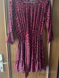 Abito maculato, rosso e nero, maniche tre quarti