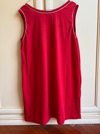 Vestito rosso con stampa davanti 80 % cotone 20 % viscosa Lunghezza 89 cm Larghezza seno 51 cm Larghezza fondo 57 cm Donna io Taglia xxl Come nuovo