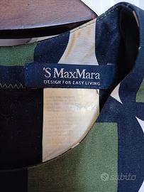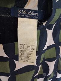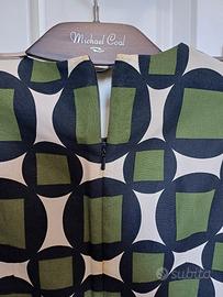 Vendo bellissimo abito originale S Max Mara, modello senza maniche, in tessuto di qualità con stampa geometrica nei toni del verde, blu notte e panna.
