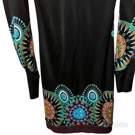 VINTAGE Y2K CUSTO BARCELONA DRESS TURTLENECK GRAPHIC PRINT Y2K BOHO TRIBAL 1 Messo una sola volta - nuovo senza cartellino